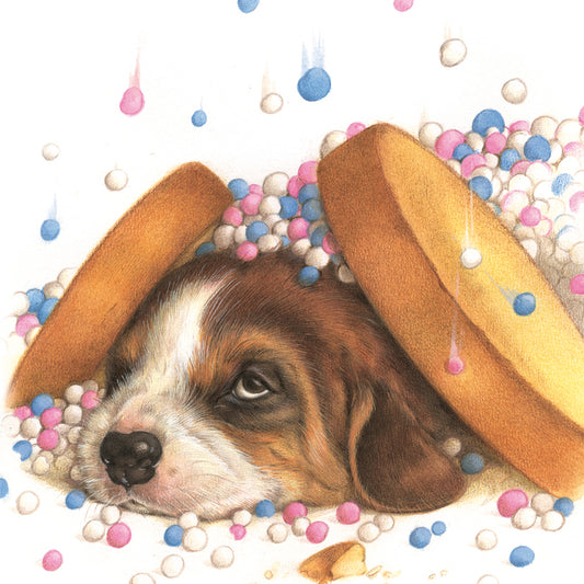 Vierkante kaart - Beagle beschuit met muisjes (honden print)