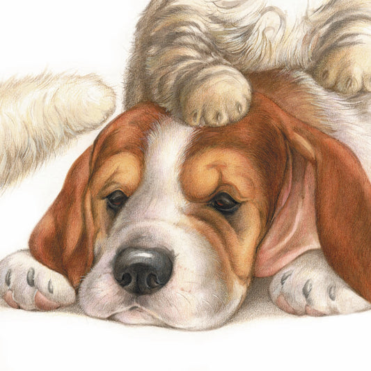 Vierkante kaart - Vriendschap, Beagle met Sharpei
