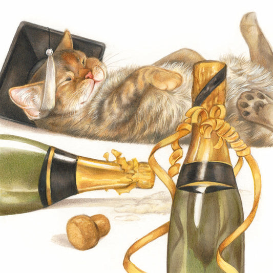 Vierkante kaart - Happy End, geslaagd, wie had dat ooit gedacht (katten print)