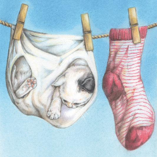 Vierkante kaart - De vuile was hangen we niet buiten, ons kitten wel (katten print)