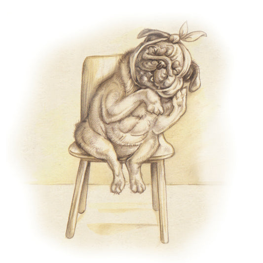 Vierkante kaart - Wachtkamer emotie; gewichtige zaken voor hondje (humor, strip)