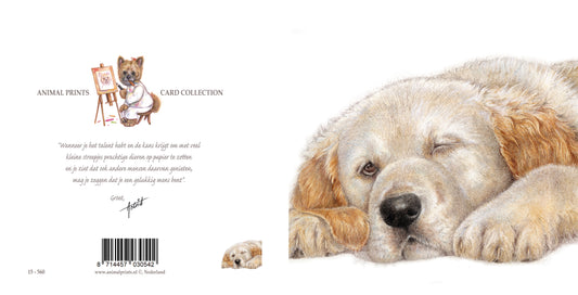 Vierkante kaart - Waarom haasten, als het rustig aan ook prima gaat... (honden print Golden Retriever)