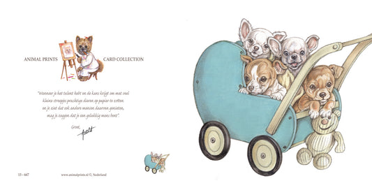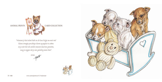 Ruime collectie van geïllustreerde kaarten. Keuze uit meer dan 180 verschillende kaarten, afgedrukt op kwaliteitspapier. Felicitatie, geboorte, verhuizing, condoleance of een prachtige kaart met uw favoriete ras, er zit altijd wel iets tussen.