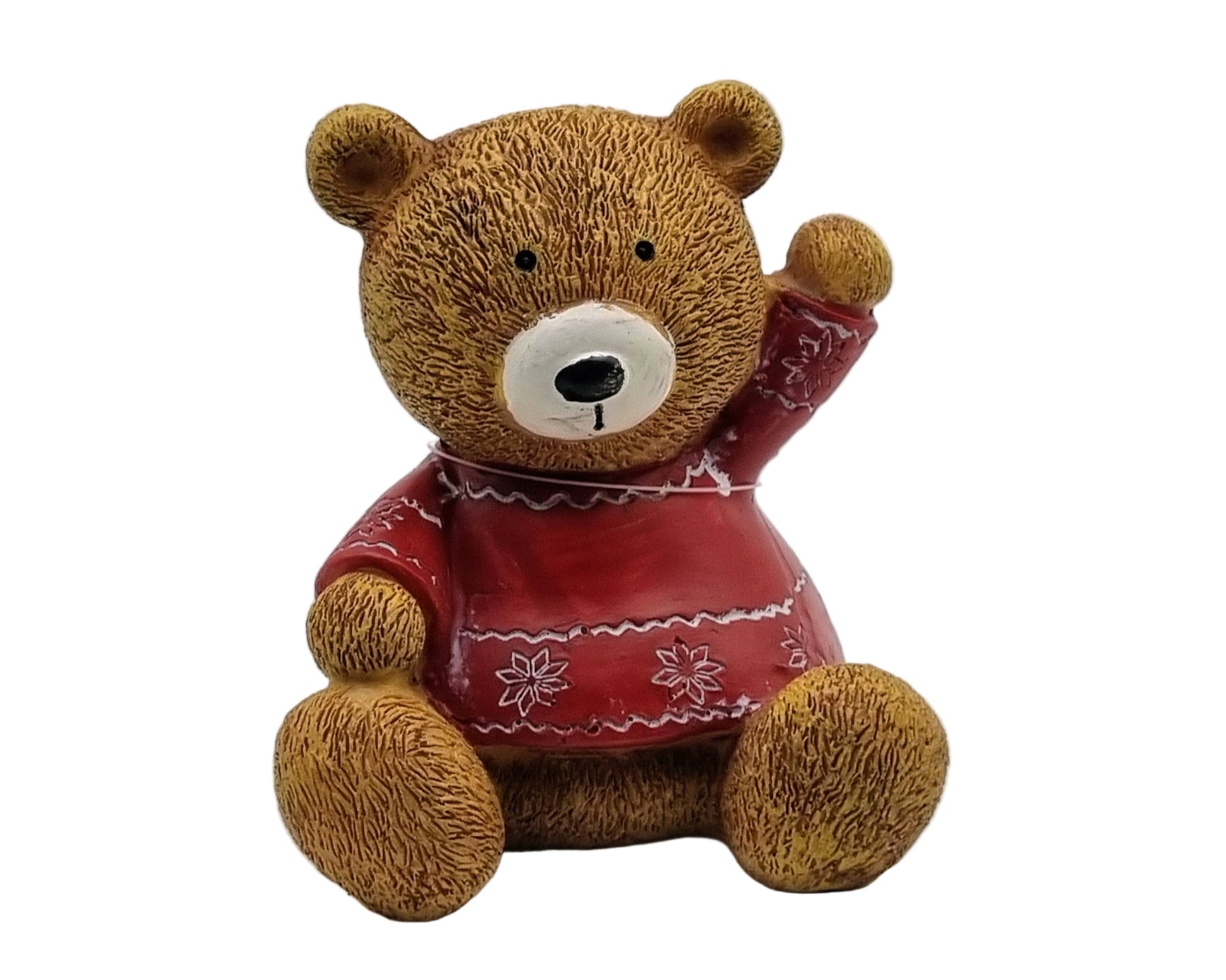 Wie kan 'm weerstaan dit vrolijke Kerstbeertje met zijn kleurrijke truitje aan.