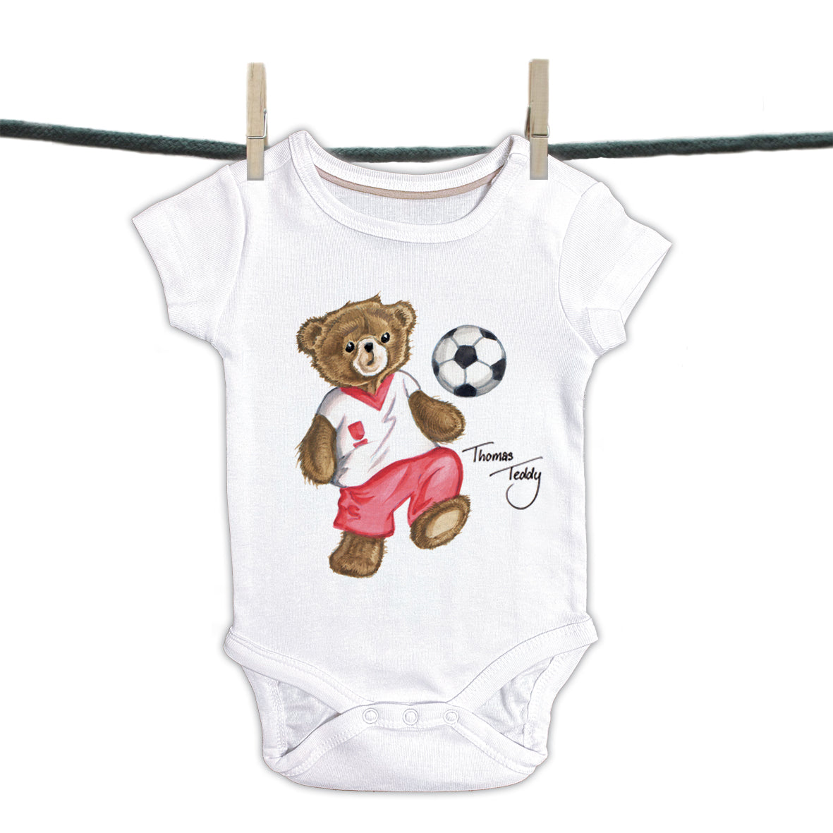 Babyromper Thomas Teddy collectie - Voetballende Beer