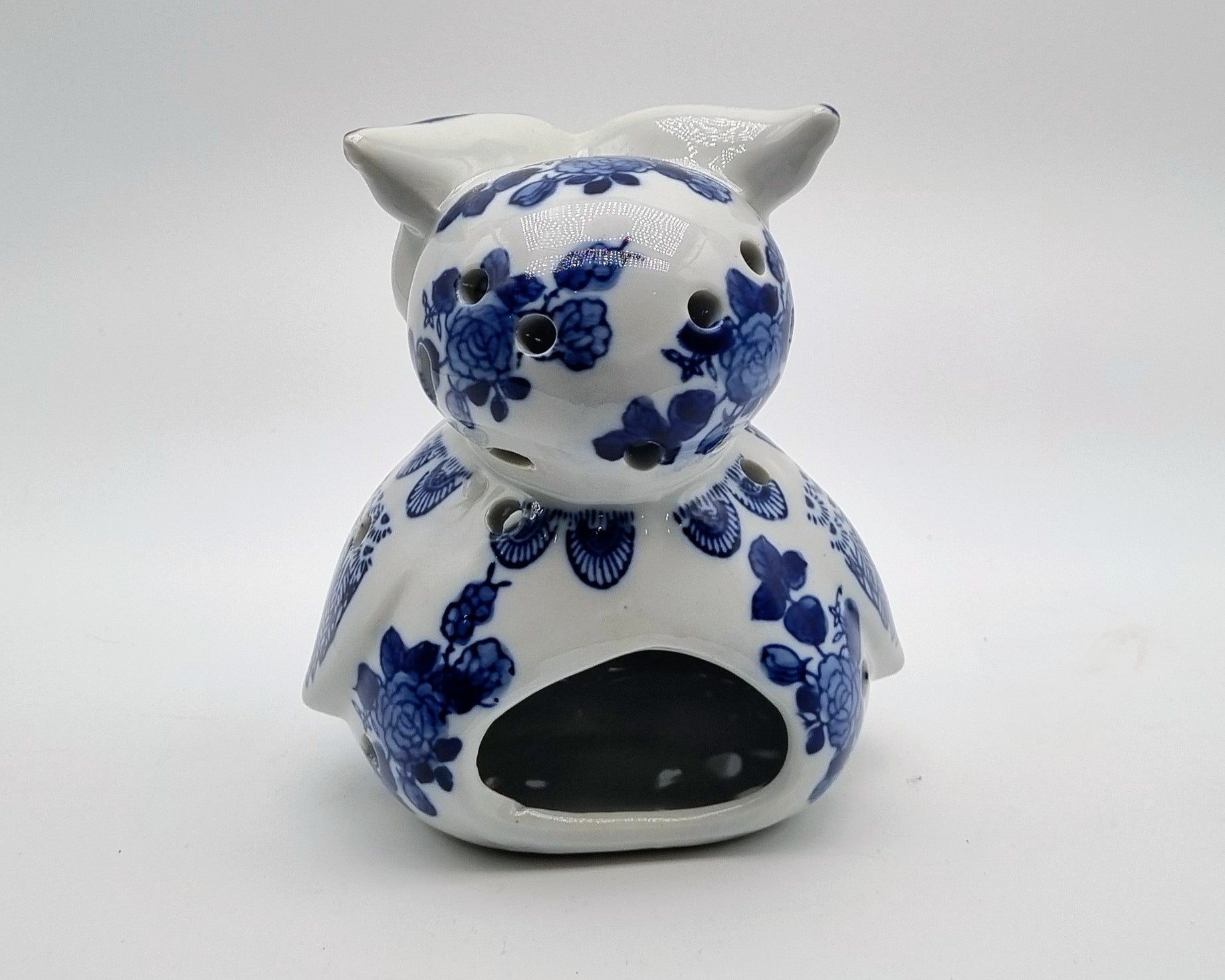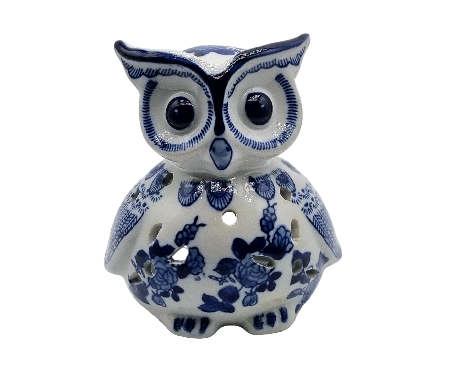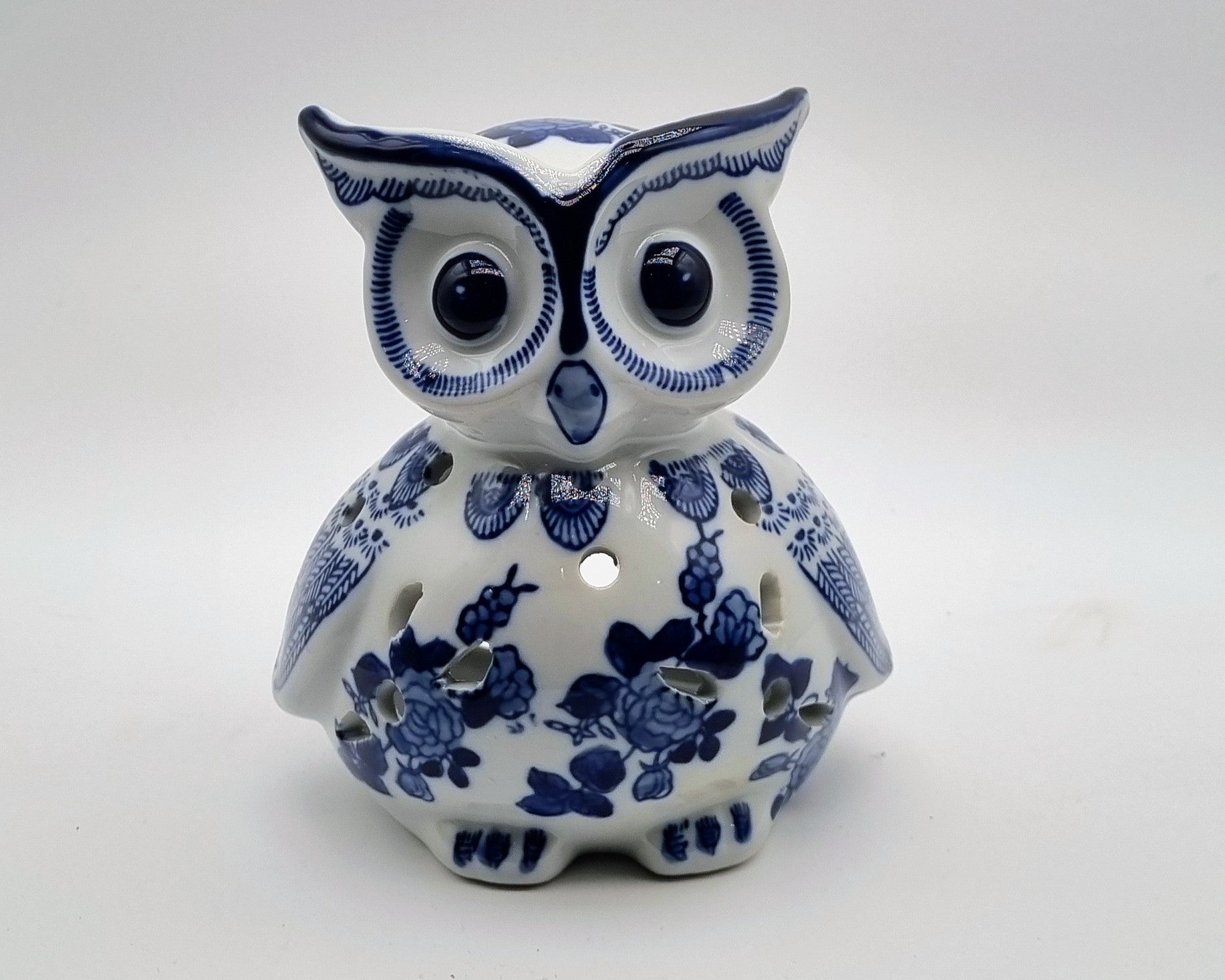Delfsblauw Uiltje met wijze uitstraling. Prachtig als decoratie in de woonkamer.