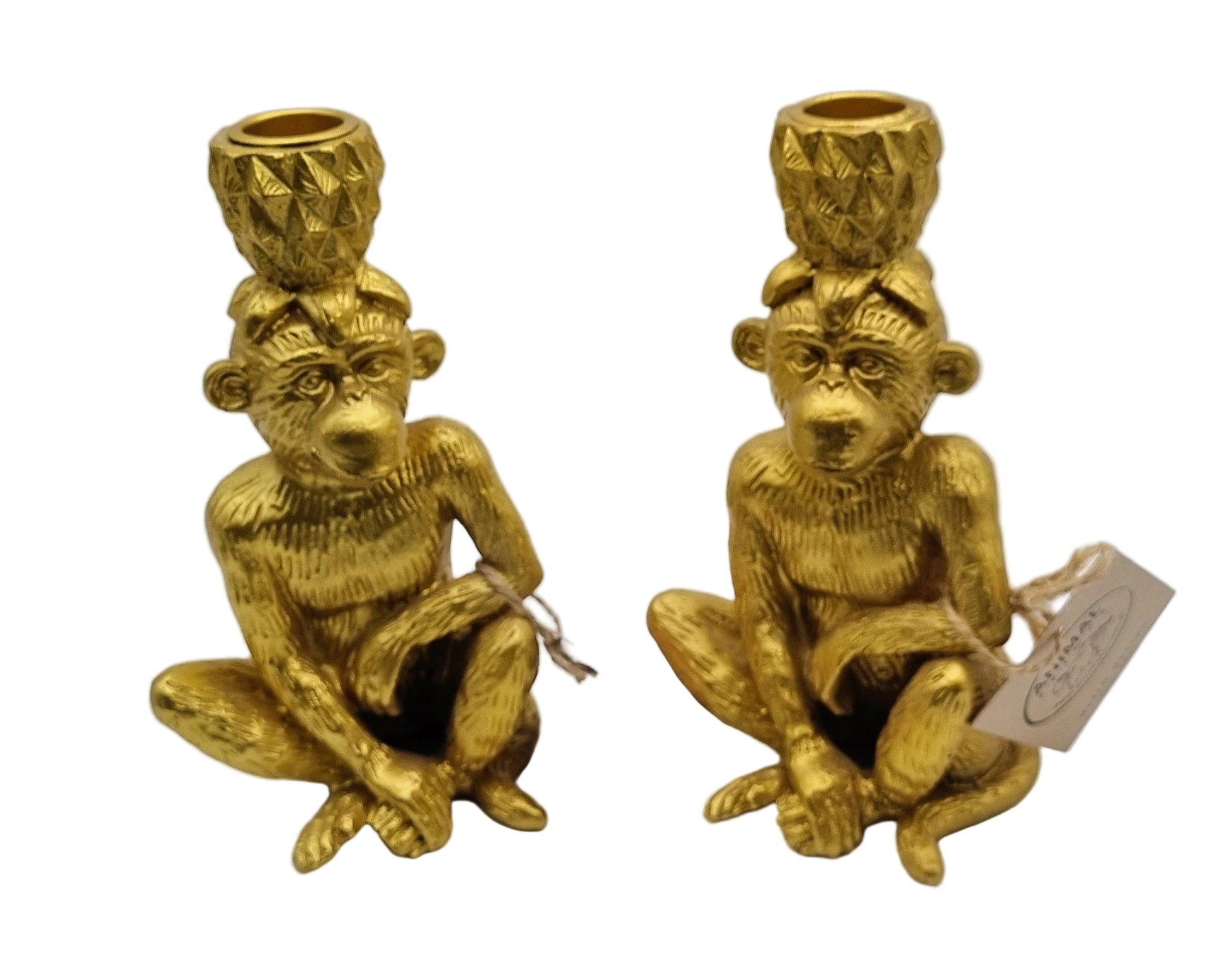 Bijzondere uitvoering van een kaarsenstandaard. Zittend aapje met ruimte voor kaars