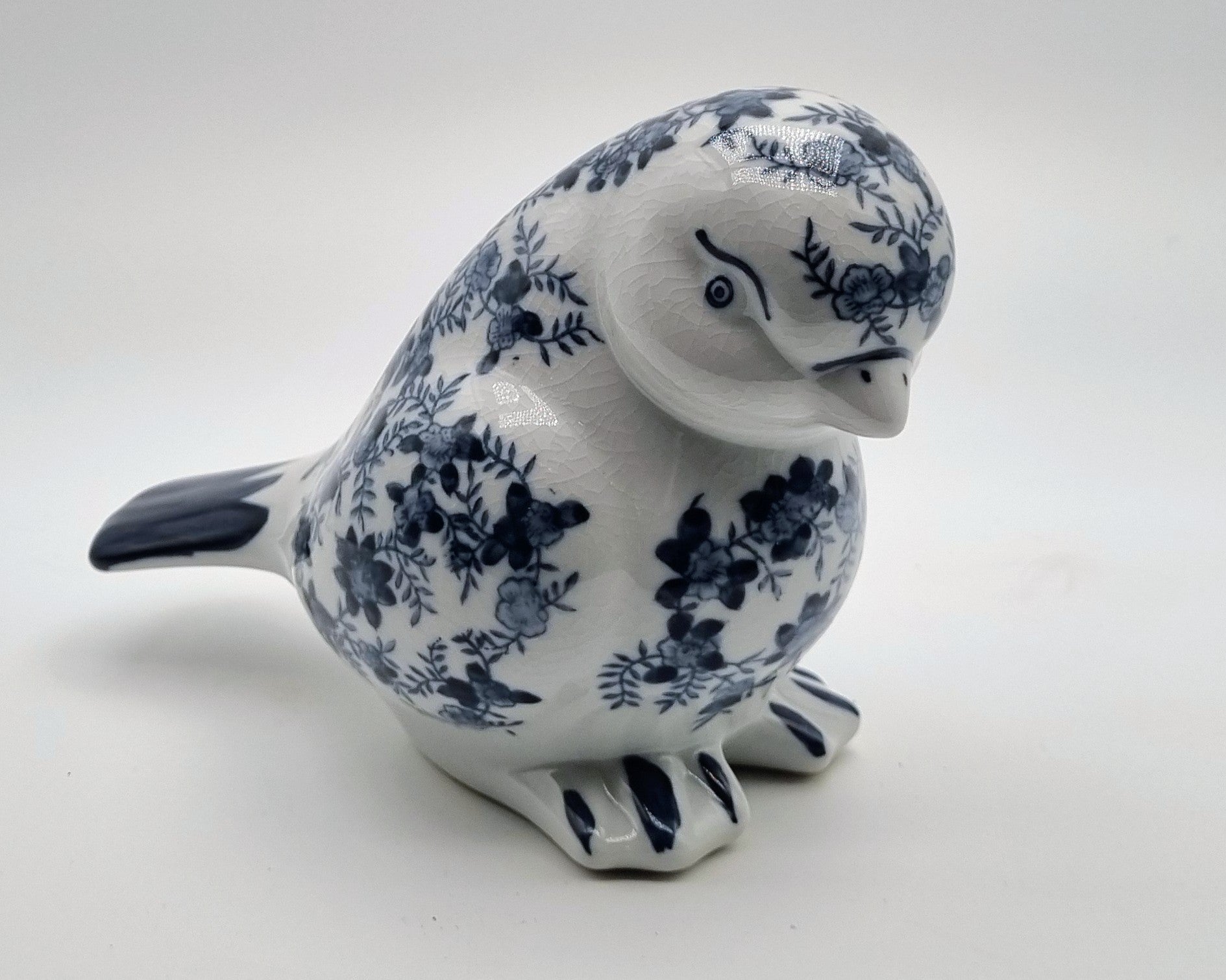 Keramische vogel in Delfsblauwe kleuren. Prachtig exemplaar, erg mooie kwaliteit. Binnenzijde is hol.
