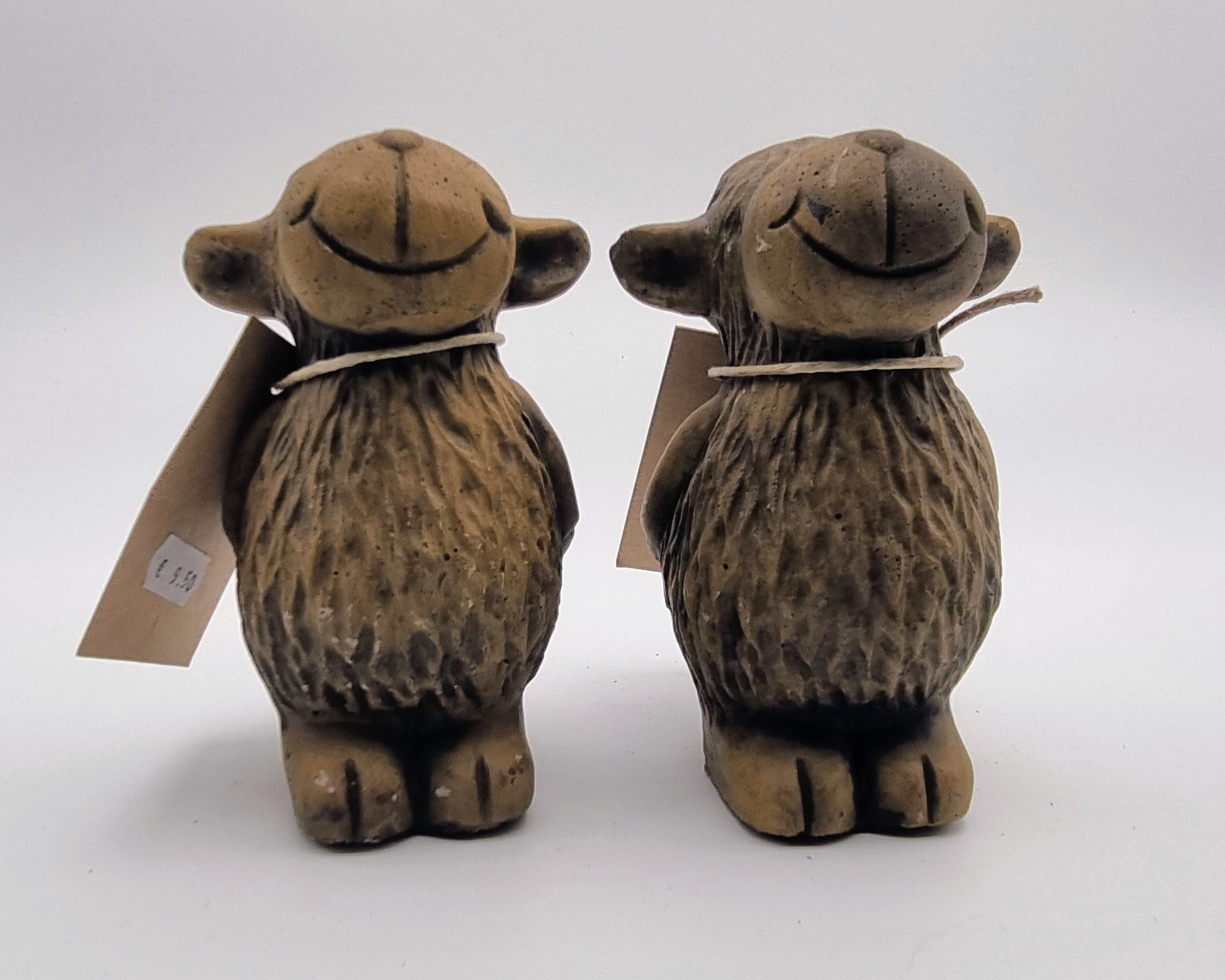 Deze zeer vriendelijke schaapjes van steen zoeken een leuke tuin of kamer om te verblijven.