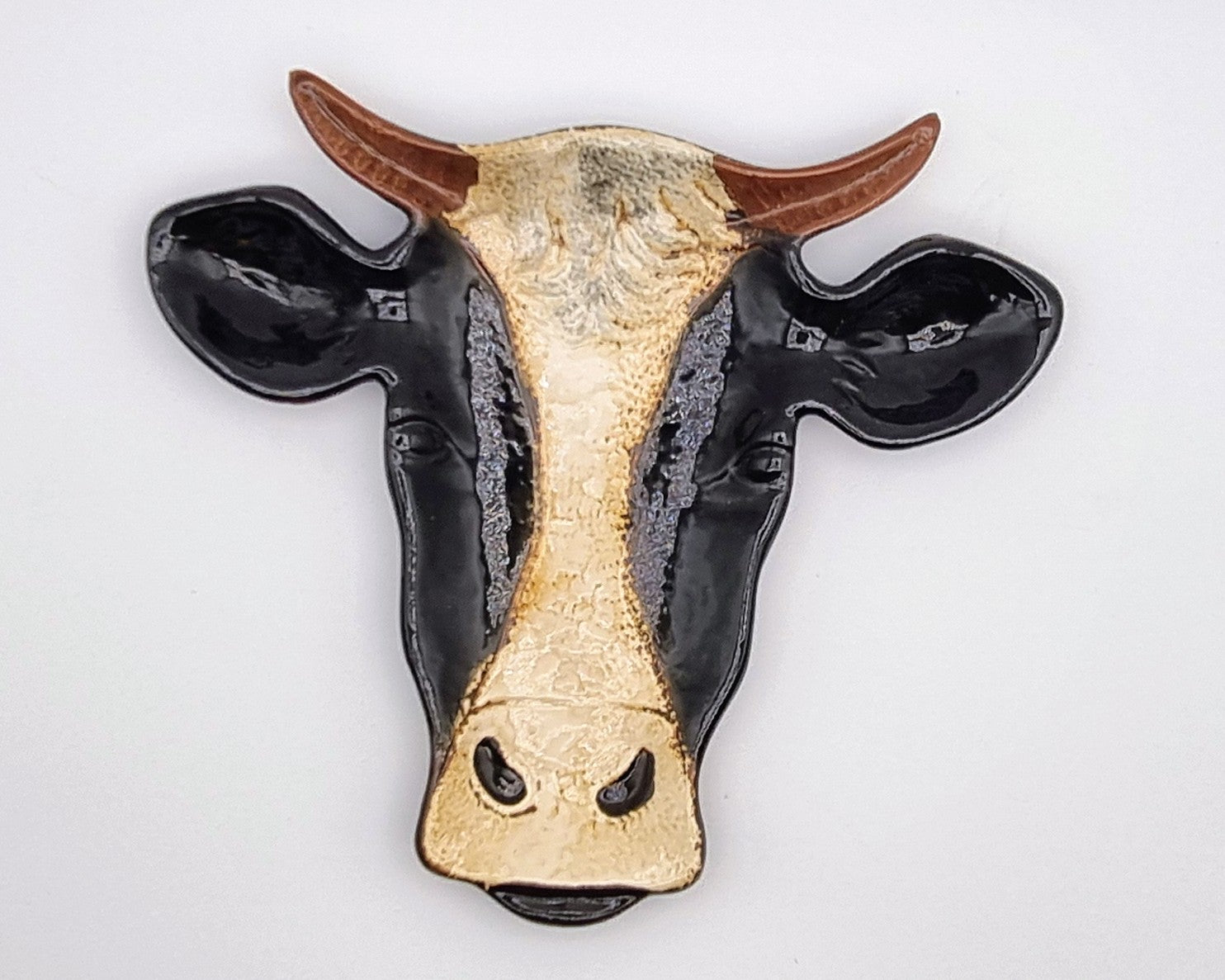 Deze keramieke schaal, in de vorm van een koeienkop, is uniek in zijn eigen soort.