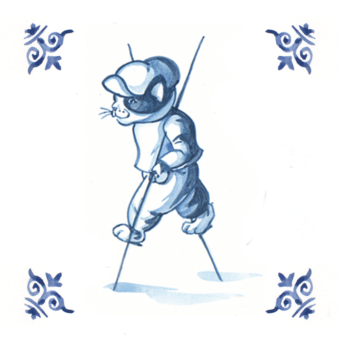 Set van 4 onderzetters - Delfsblauwe kattenserie