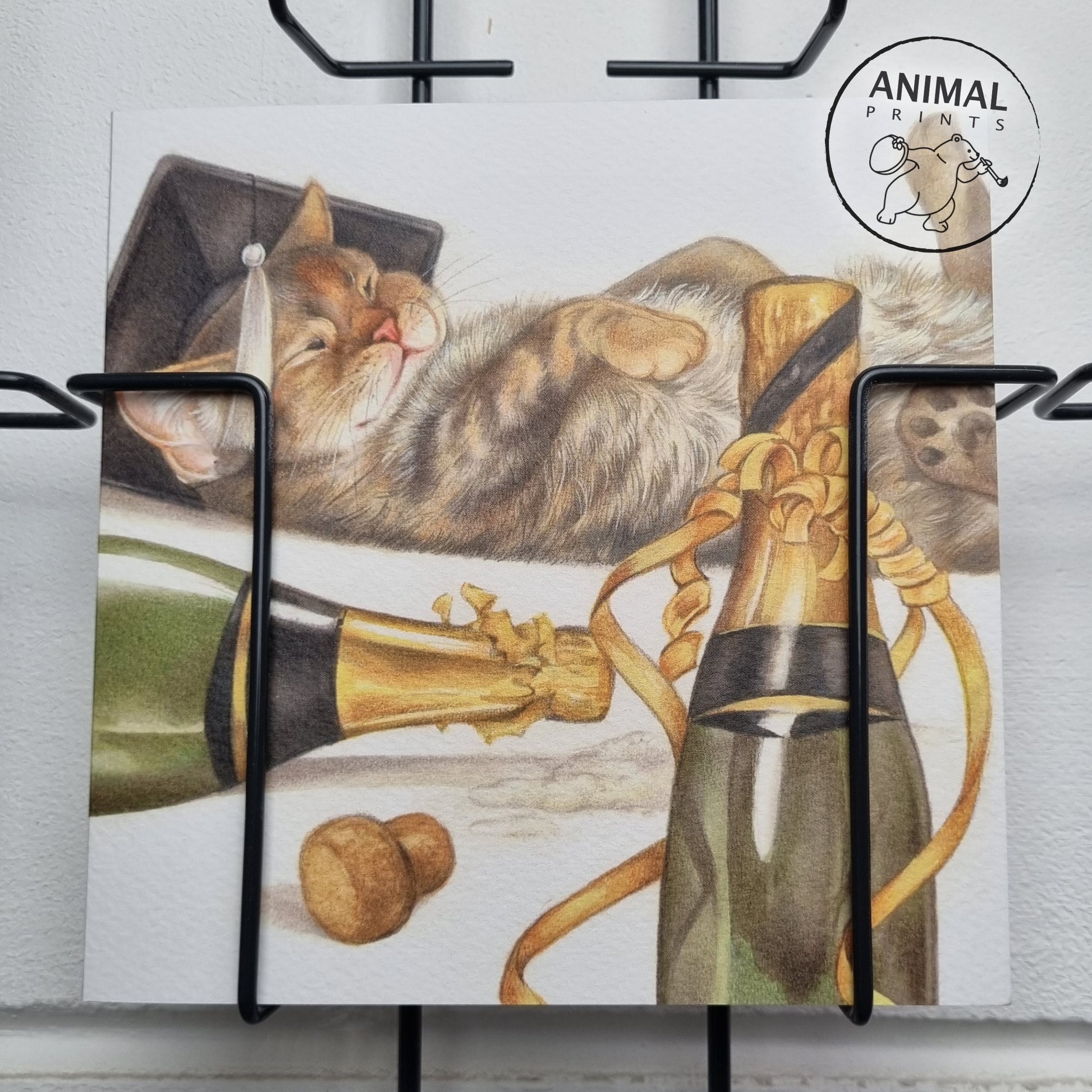 Vierkante kaart - Happy End, geslaagd, wie had dat ooit gedacht (katten print)